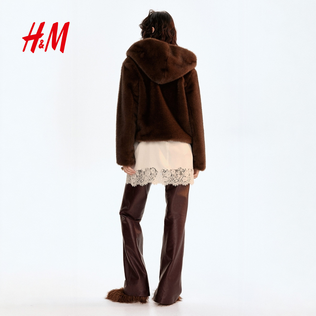 Fabrique香草绵羊毛泰迪绒感学院风连帽环保皮草外套 秀场同款