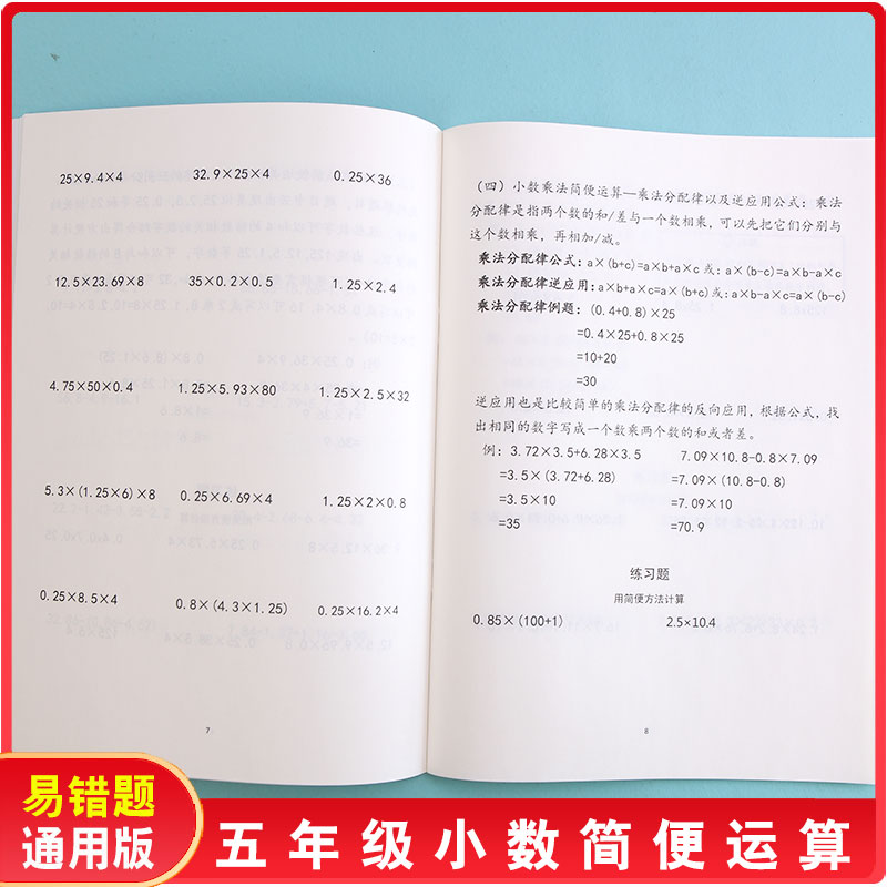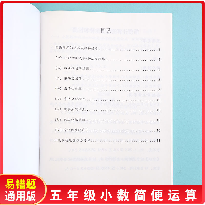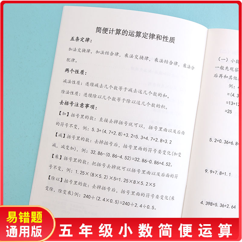小数 数学小数点基础计算题巧算速算口算题卡练习册 简便运算专项训练小学四五年级小数加减乘除四则混合运算必刷题每日一练通用版