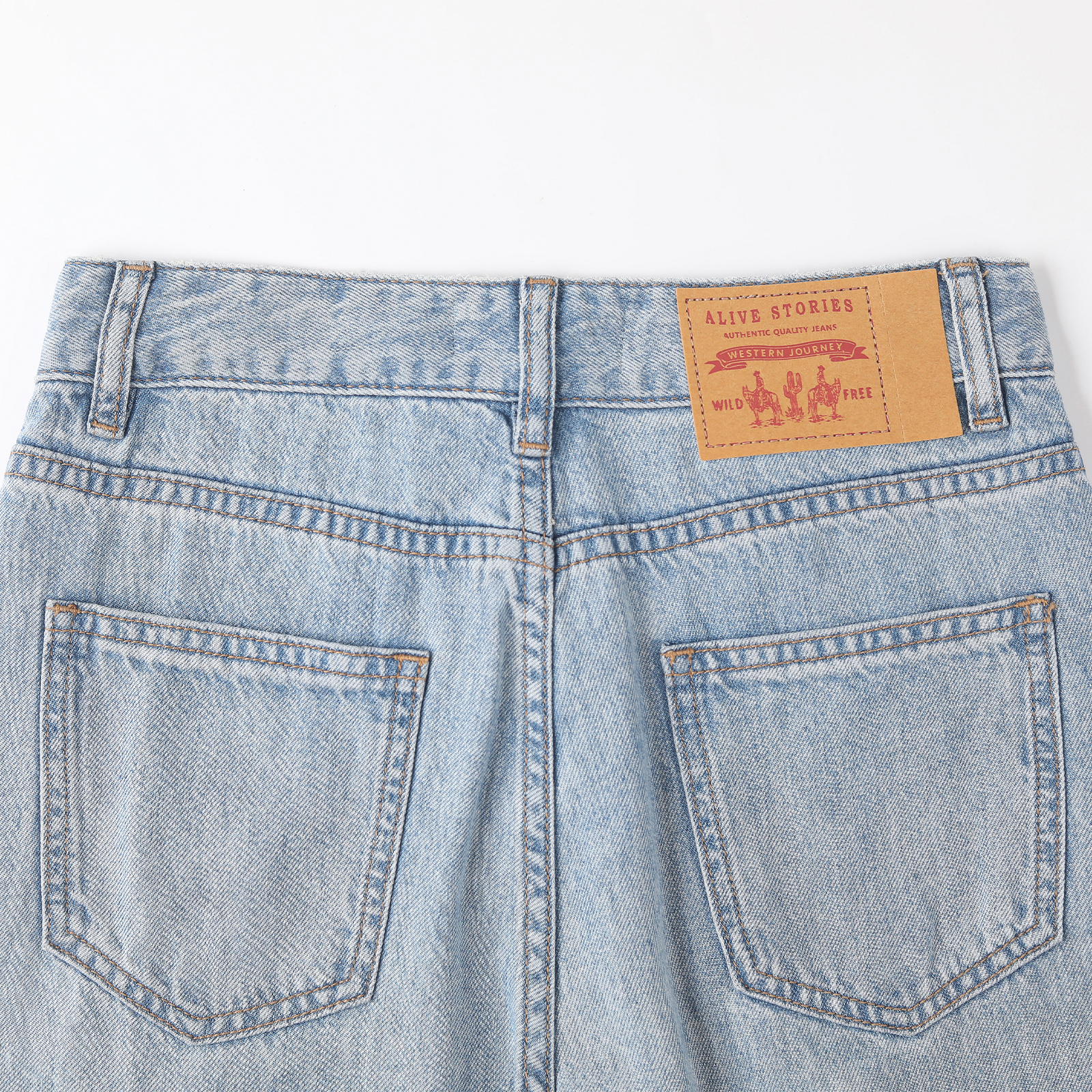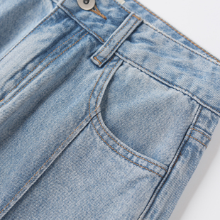 高腰阔腿双扣长裤 宽松直筒裤 女秋冬新款 KZH真维斯高端复古牛仔裤