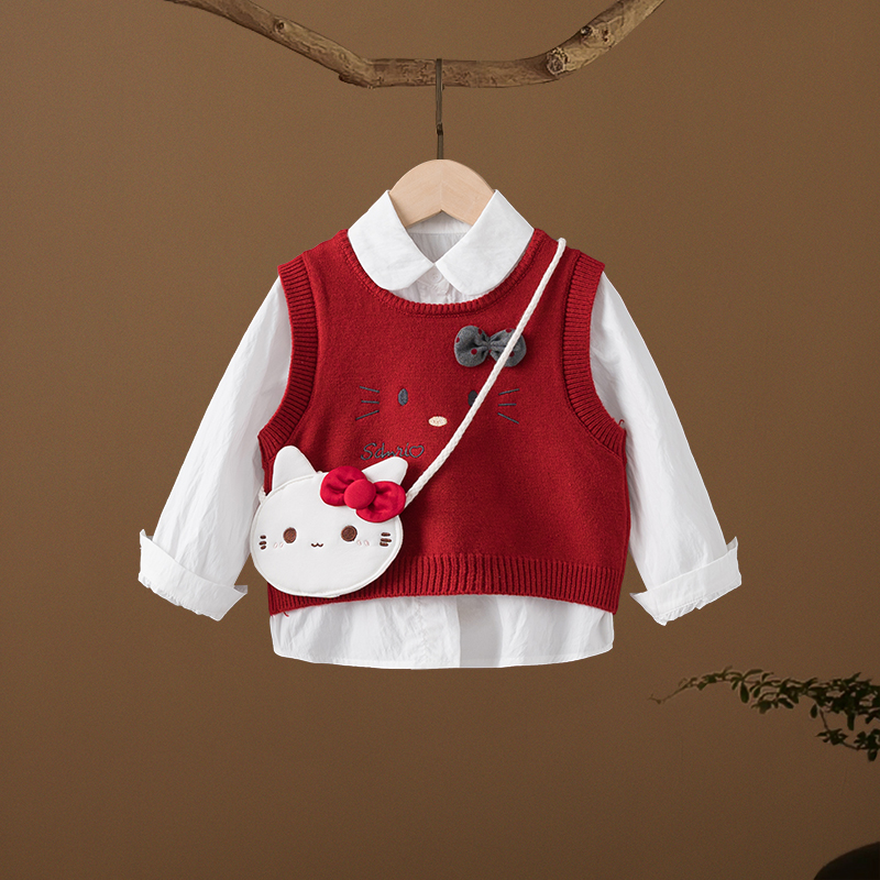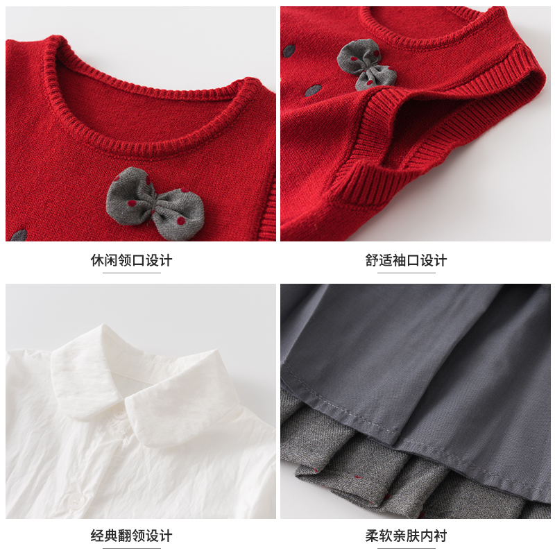 套装 叠穿内搭T恤木耳边牛仔阔腿裤 新款 蓝色镂空针织背心裙女秋季