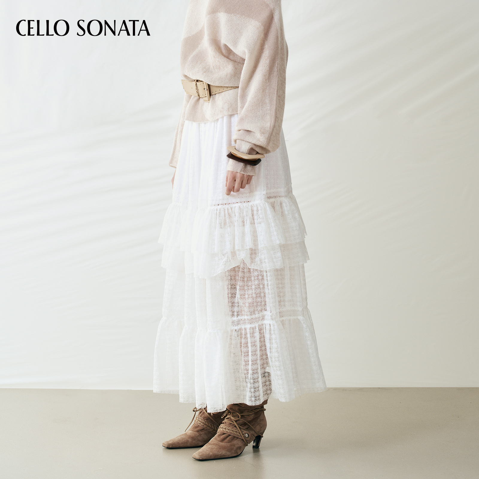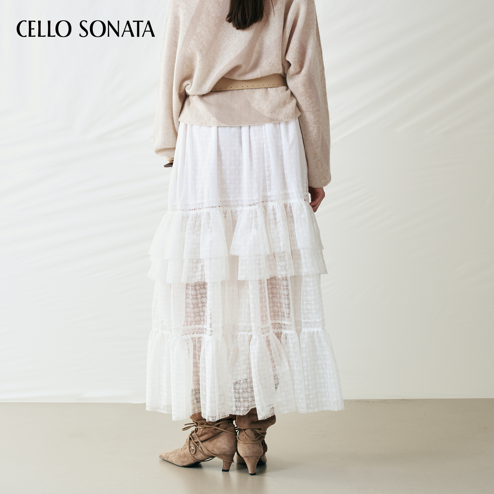 千朔不规则蕾丝白色半身裙早秋季 小个子仙女蛋糕裙a字长裙子 新款