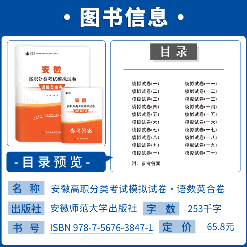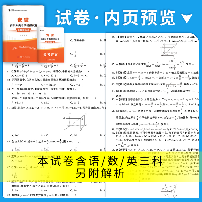 安徽省分类招生考试卷2026安徽单招考试复习资料真题职业适应性测试校考模拟试卷复习用书文化素质测试直通车安徽高职单招教材