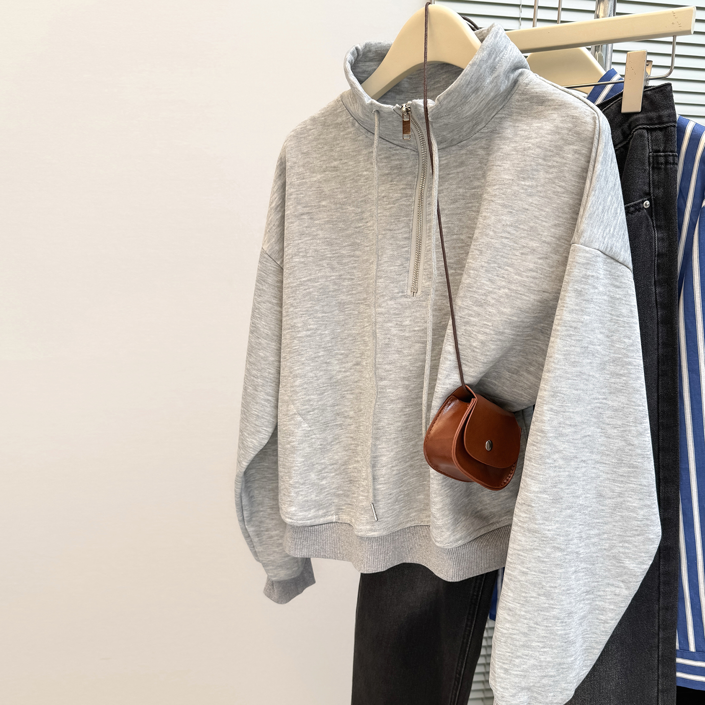 韩版 春秋季 卫衣女薄款 立领半拉链长袖 宽松慵懒风外套上衣 2025新款