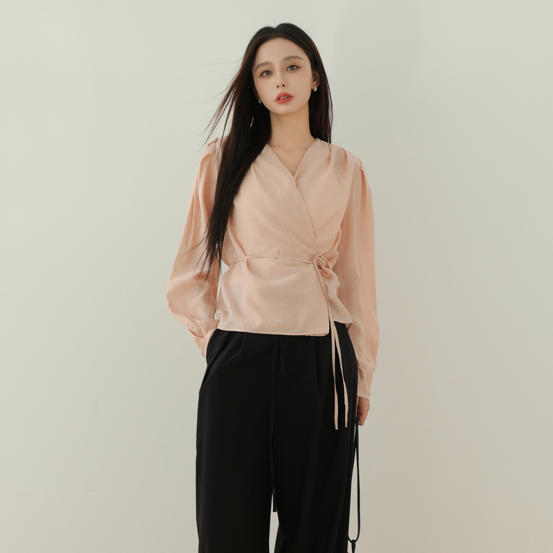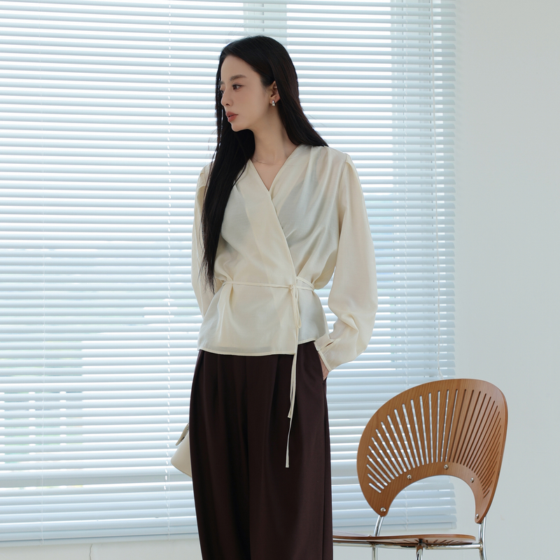 衬衫 AIRIQI秋季 灯笼袖 斜襟系带设计感减龄气质小衫 AH41XS304 新款