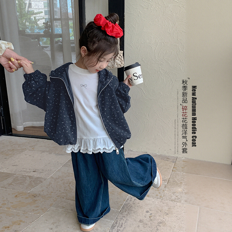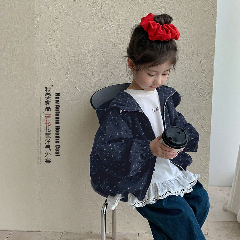 宝宝洋气碎花连帽拉链衫 韩版 山系儿童冲锋衣 2025新款 女童外套秋装