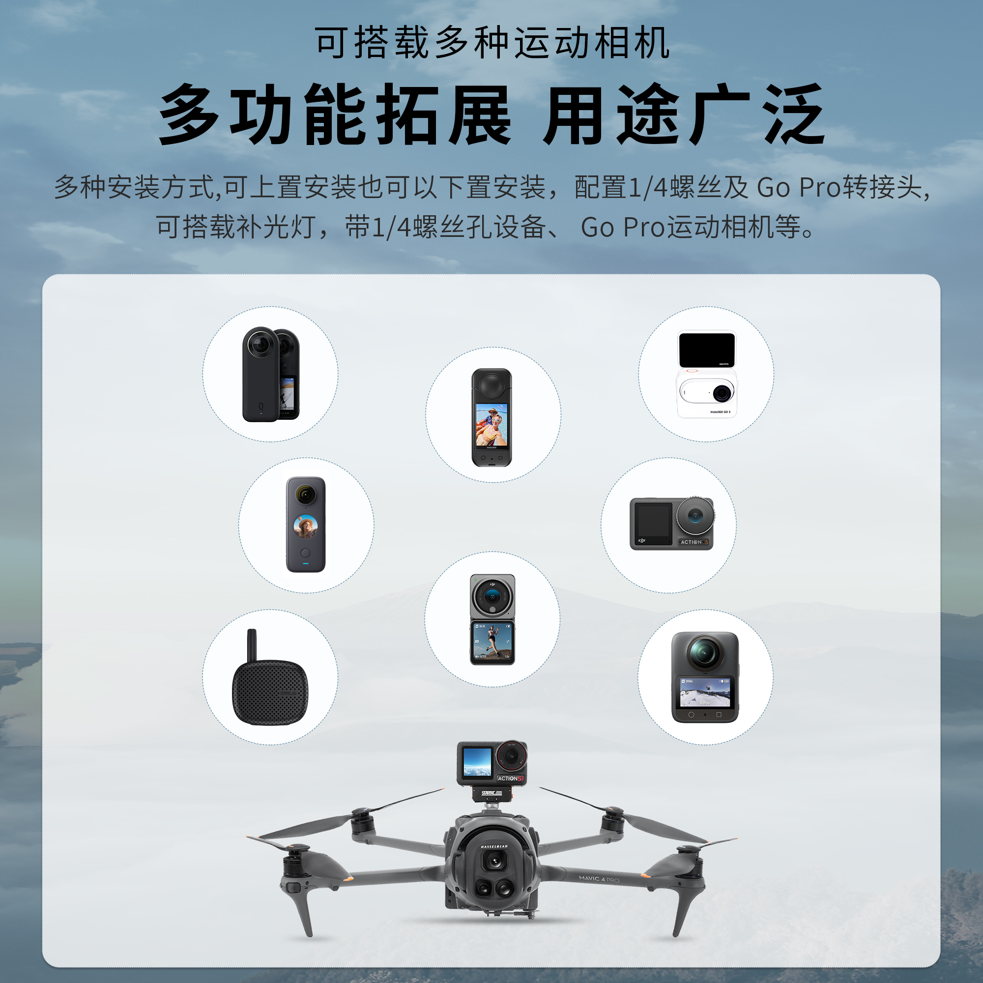 适用DJI大疆无人机挂载固定支架360全景运动相机多功能拓展架配件