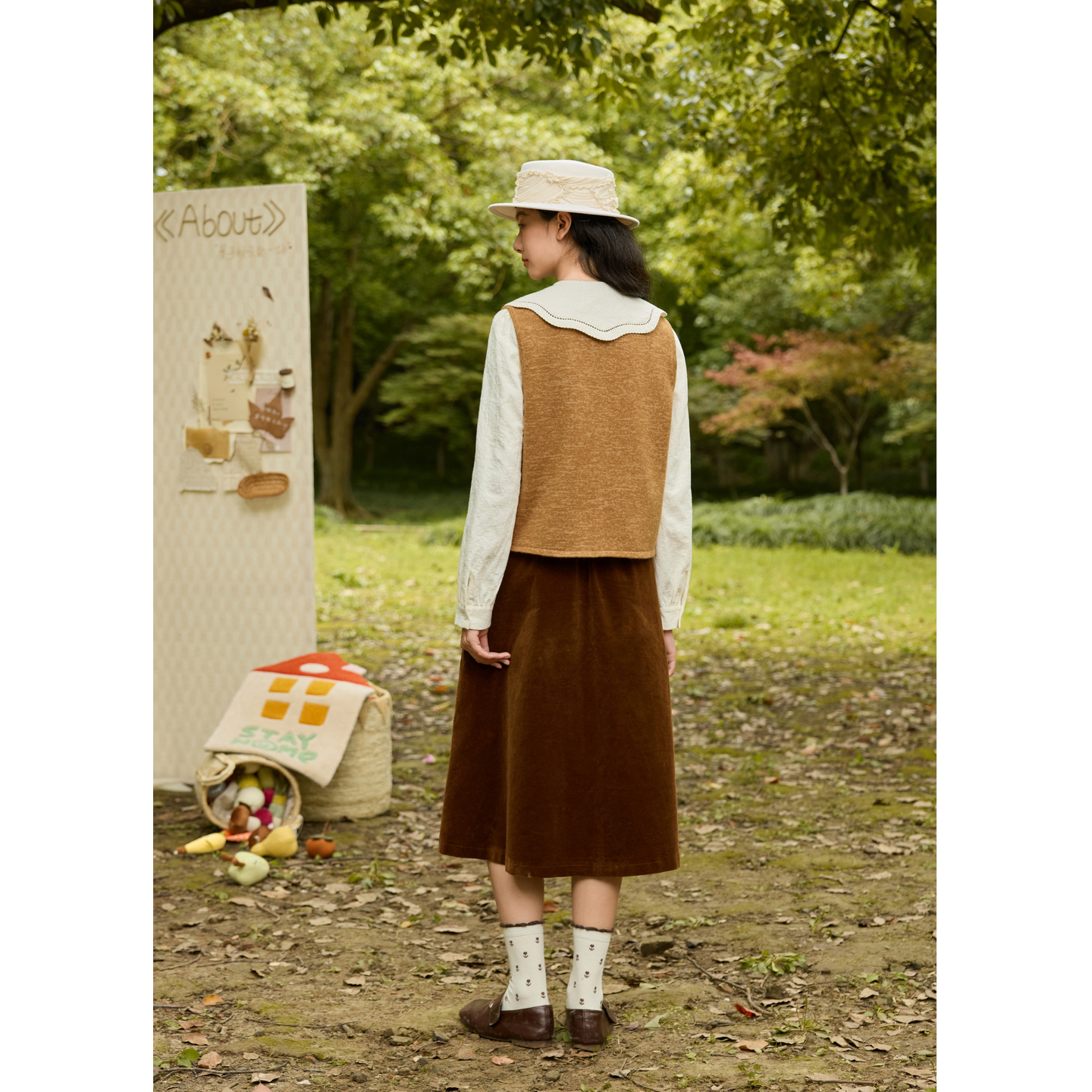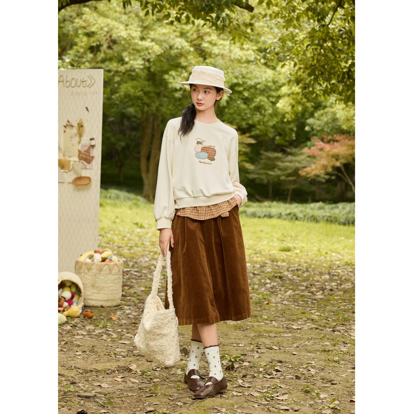 紫涵复古灯芯绒七分裙女2025年秋季 美拉德宽松保暖a字半身裙 新款