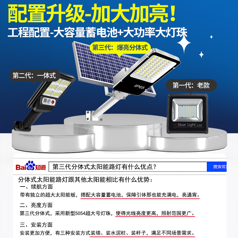 太阳能户外灯家用庭院灯2025新款 超亮LED大功率农村强光照明路灯