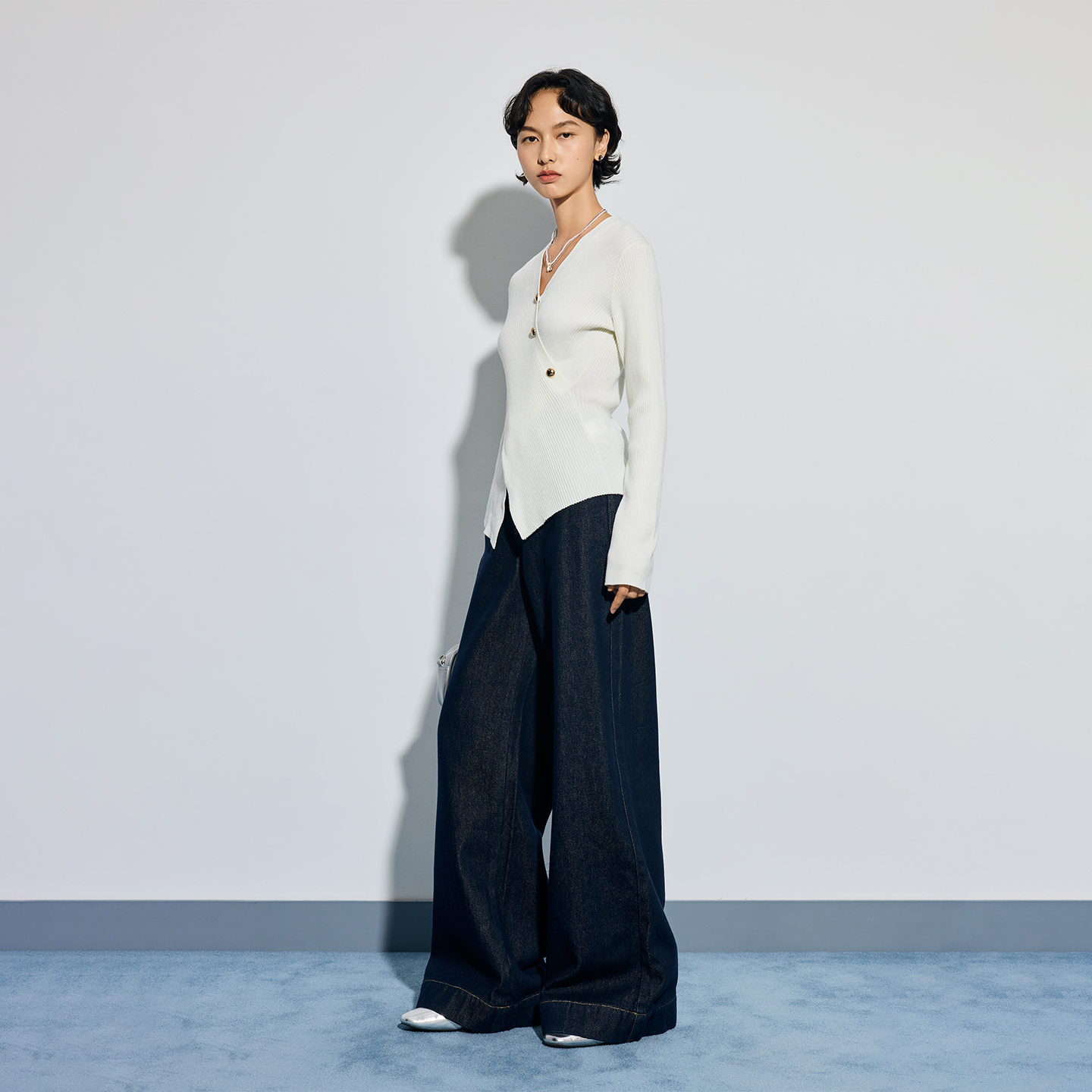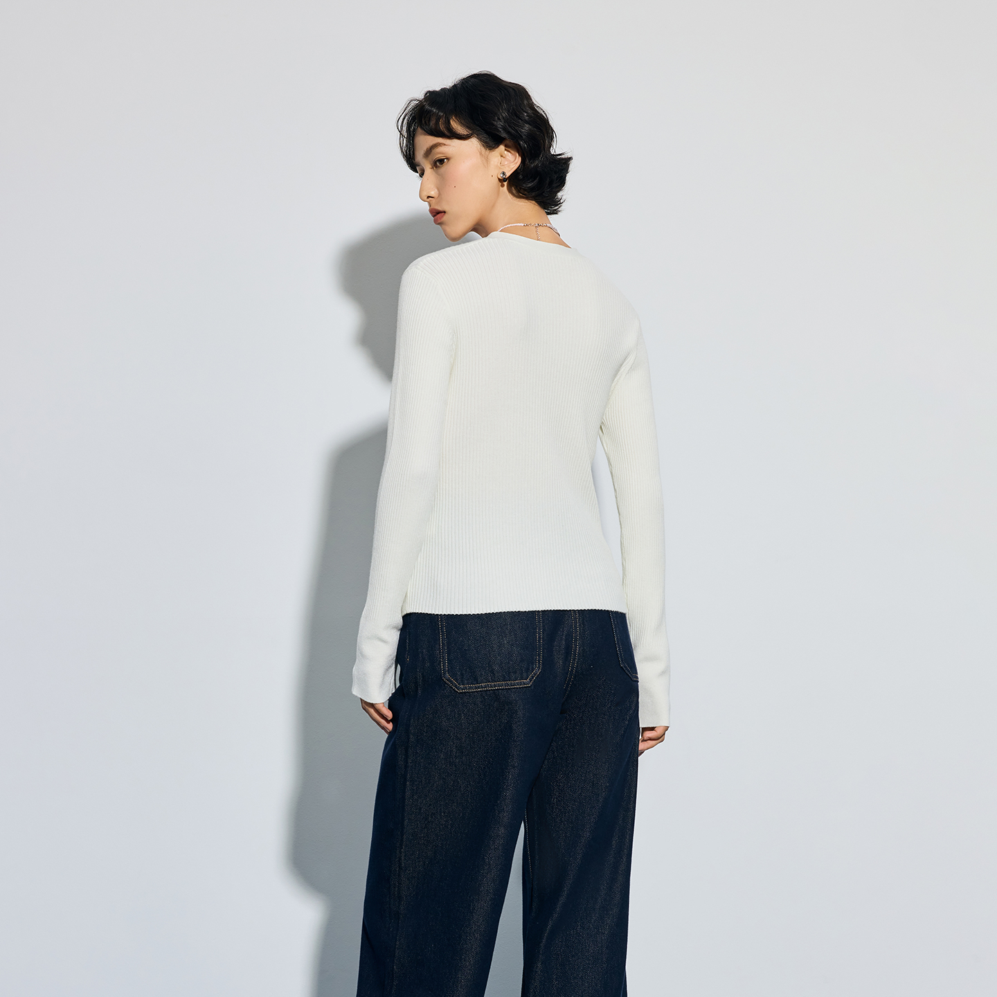 女上衣25秋新品 FIVE 口毛织套头衫 羊毛微喇袖 PLUS立体显瘦法式