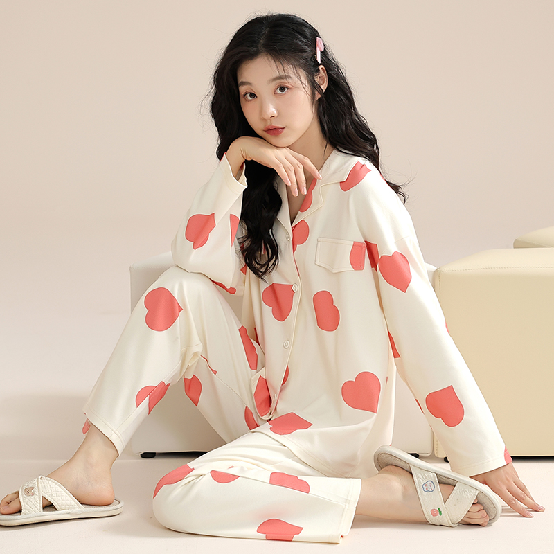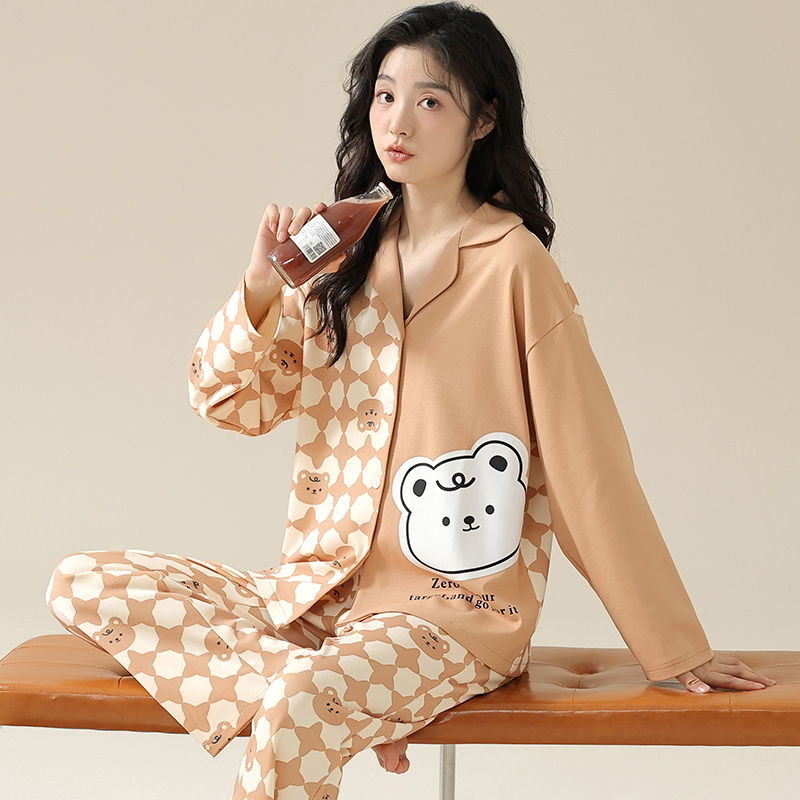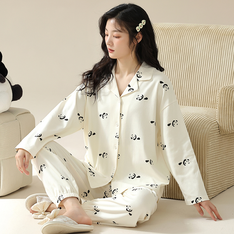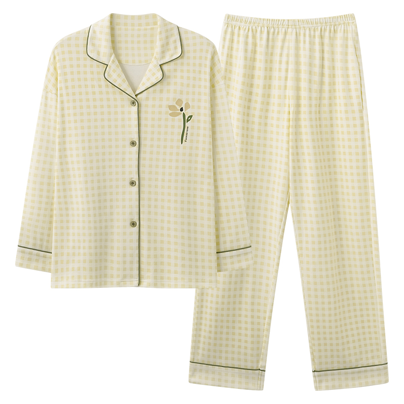 纯棉长袖 简约休闲套装 长裤 大码 高级感家居服秋冬款 睡衣女士春秋季