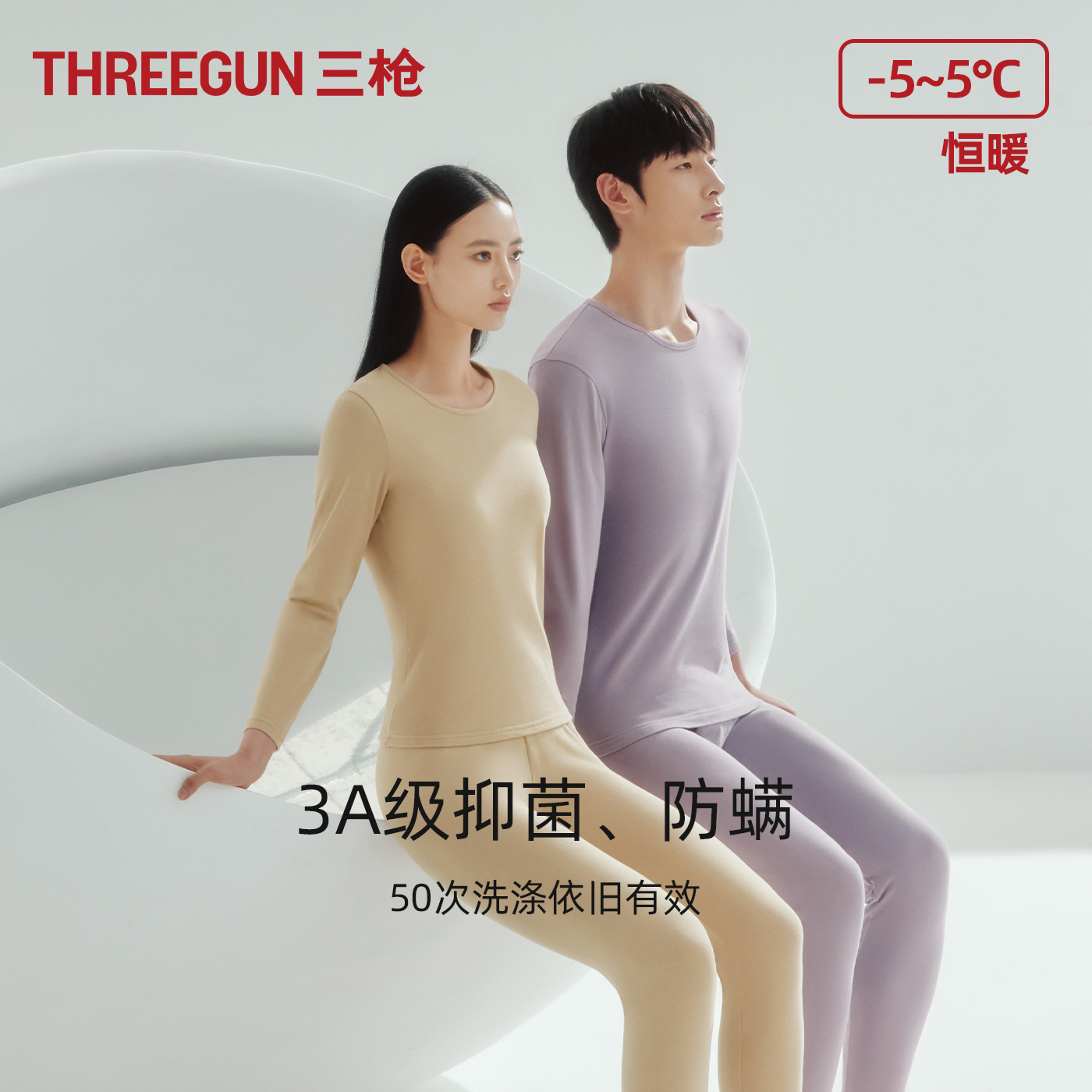 三枪保暖内衣男V领抗菌防螨中厚秋衣秋裤 2025秋冬 女圆领保暖衣裤