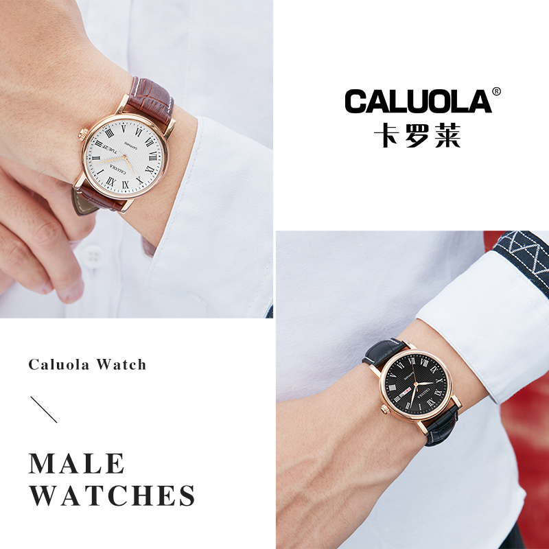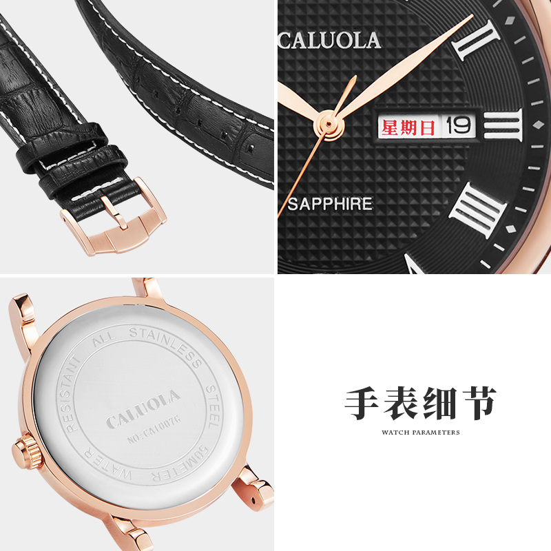 情侣新款 品牌正品 石英表潮 手表简约真皮带防水男表时尚 卡罗莱男士