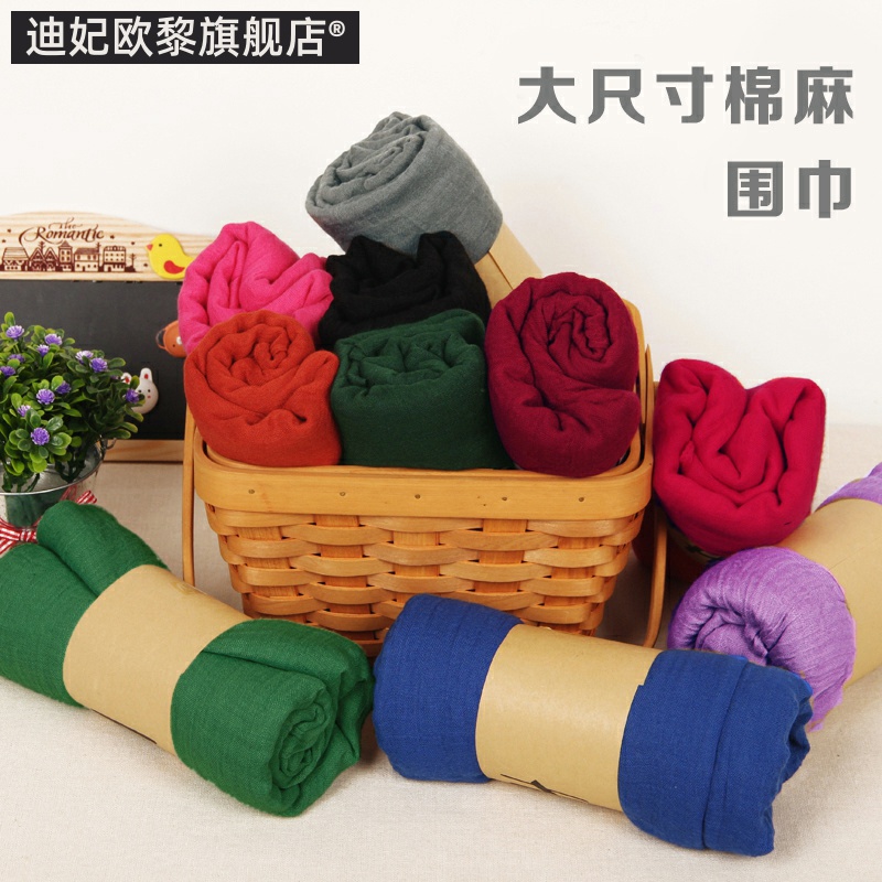 棉麻围巾女士披肩两用百搭纯色亚麻超大丝巾春秋冬季 新款 韩版