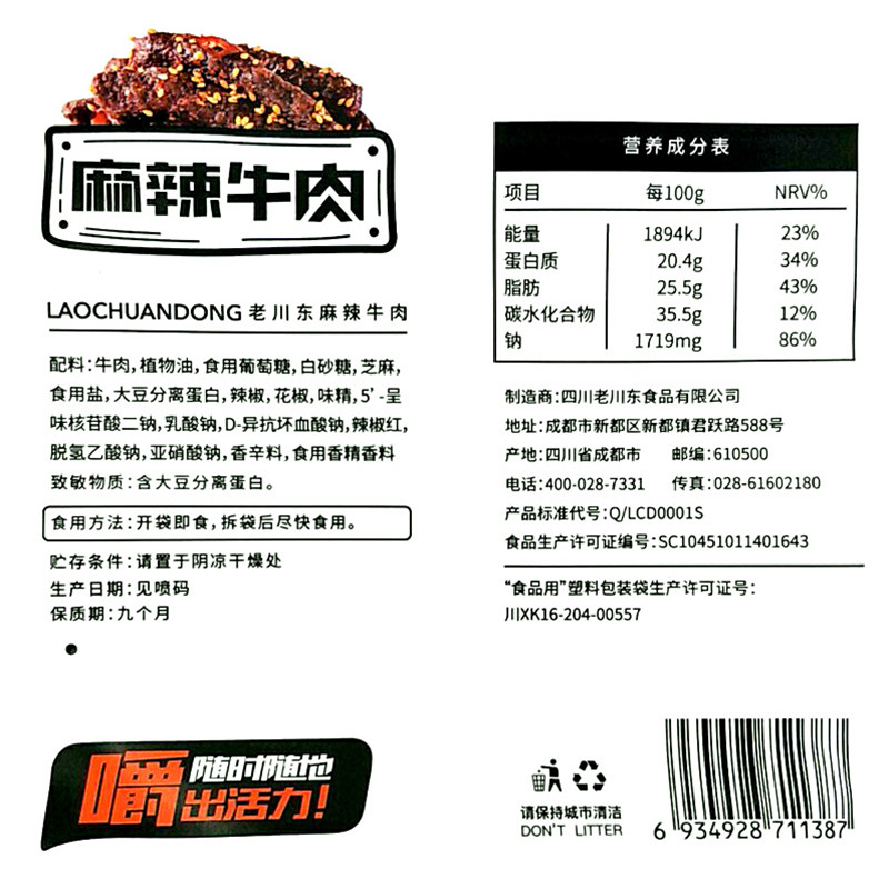 老川东麻辣牛肉500g四川特产牛肉干散装 200g 休闲零食香辣味小袋