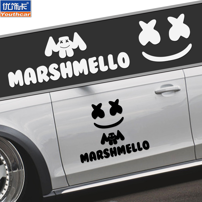 拉花车贴 饰贴纸电子音乐车身创意改装 Marshmello棉花糖个性 汽车装