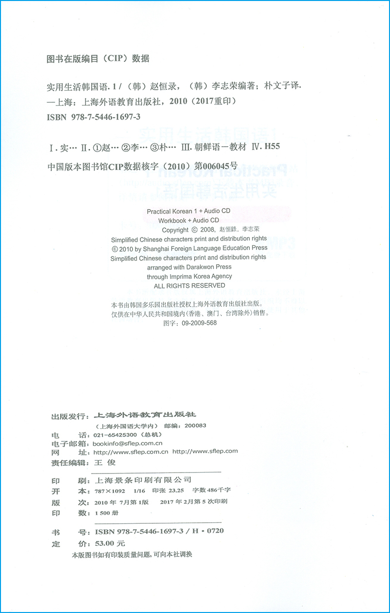 社 实用生活韩国语1第一册 上海外语教育出版 李志荣编著韩语自学入门教材韩国语日常生活交际自学教材书籍 9787544616973 赵恒录
