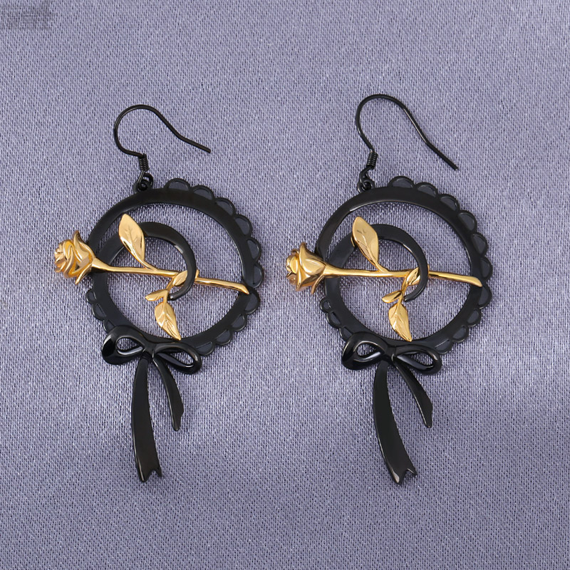 漫导士原创设计 洛丽塔Lolita玫瑰耳坠925银首饰耳环耳钉动漫周边