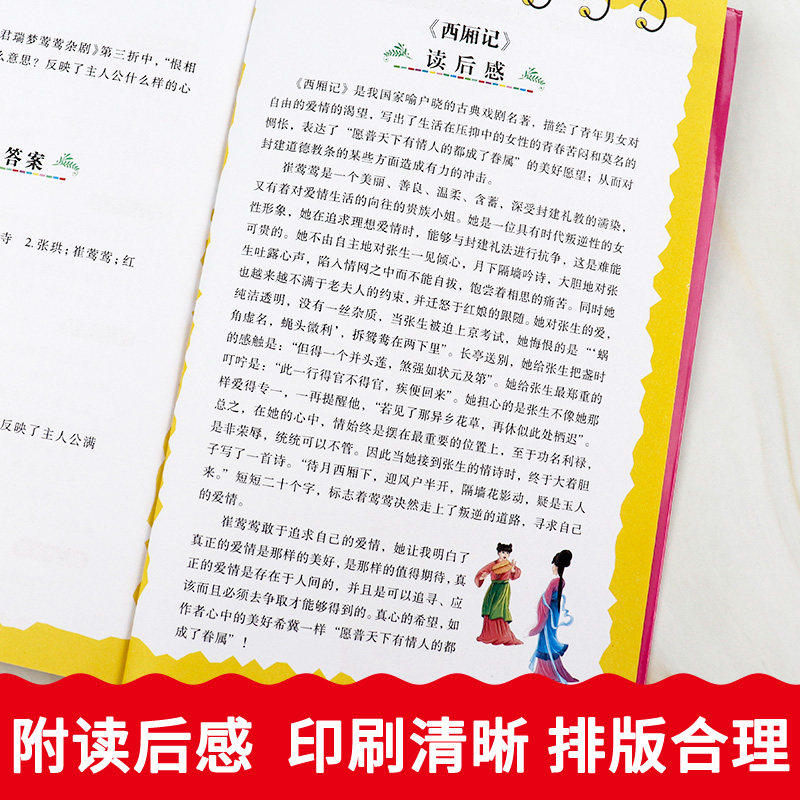 无障碍阅读儿童文学经典 三四五六年级必读课外书籍寒假推荐 名著古典戏剧小说读物人生必读书 书小学生青少年版 西厢记正版