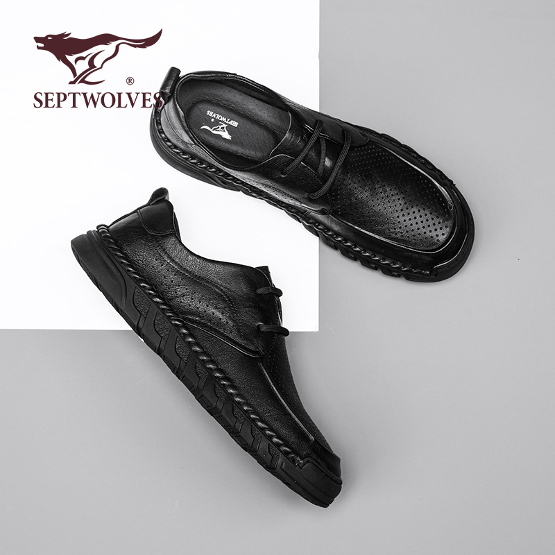 新品 镂空休闲男鞋 韩潮商务凉鞋 鞋 子 软牛皮打孔正装 七匹狼透气皮鞋