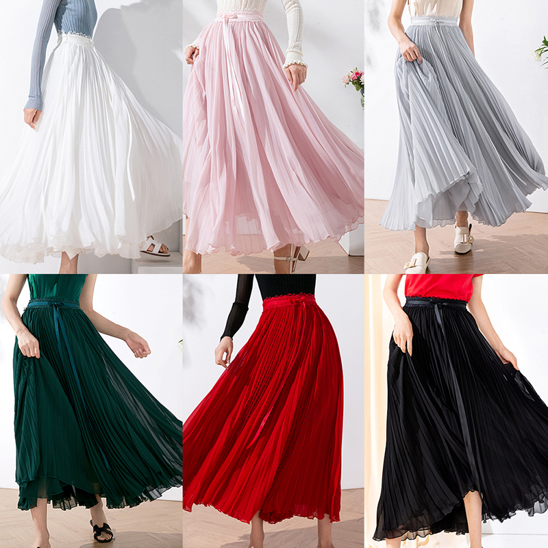 大摆百褶裙a字垂感纱裙 网纱半身裙春秋女中长款 29833 软钻巴厘纱