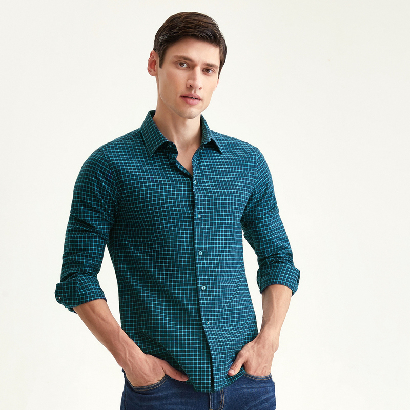 100%长绒棉 衬衫 DP成衣免烫 男长袖 商务格纹衬衣抗皱J 梦特娇秋季