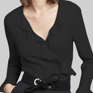 女长袖 小衫 夏季 上衣泡泡袖 2025新宽松设计感V领法式 蕾丝刺绣衬衫