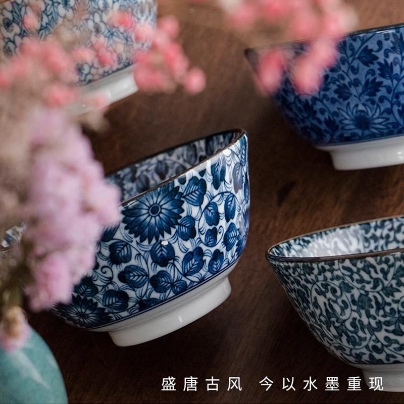 日本进口古染青花饭碗陶瓷家用个性 吃饭碗大号 单个釉下彩复古日式