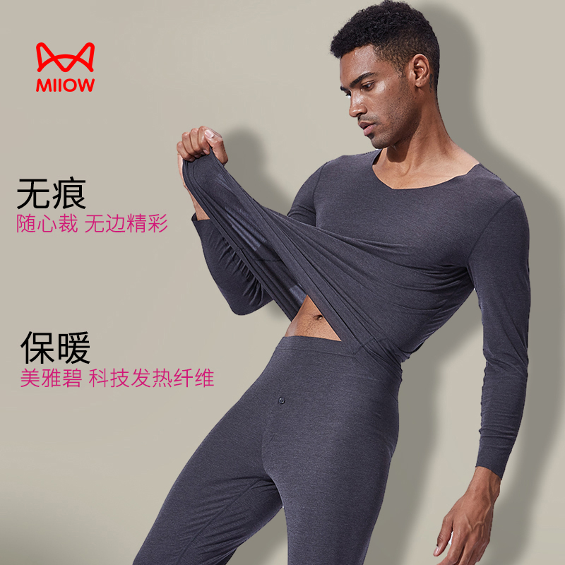 莫代尔秋衣秋裤 猫人男士 薄款 紧身打底发热秋衣裤 无痕保暖内衣套装