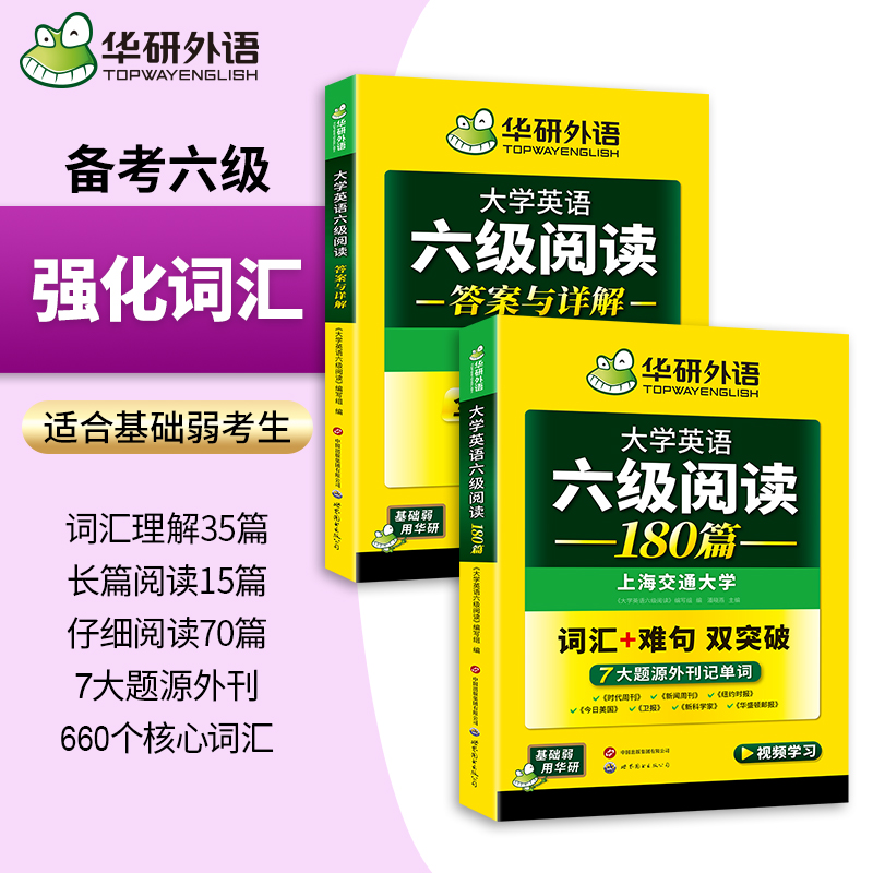 英语六级阅读理解专项训练备考2025年12月华研外语大学6级阅读180篇搭真题听力词汇翻译与写作文CET6考试资料四六级书籍题库书