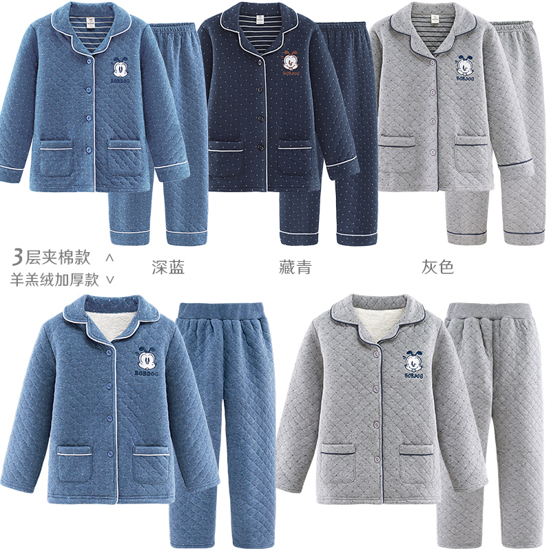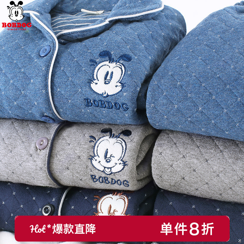 加大码 套装 家居服春秋 秋冬季 芬腾女士睡衣空气棉夹层纯棉加厚长袖