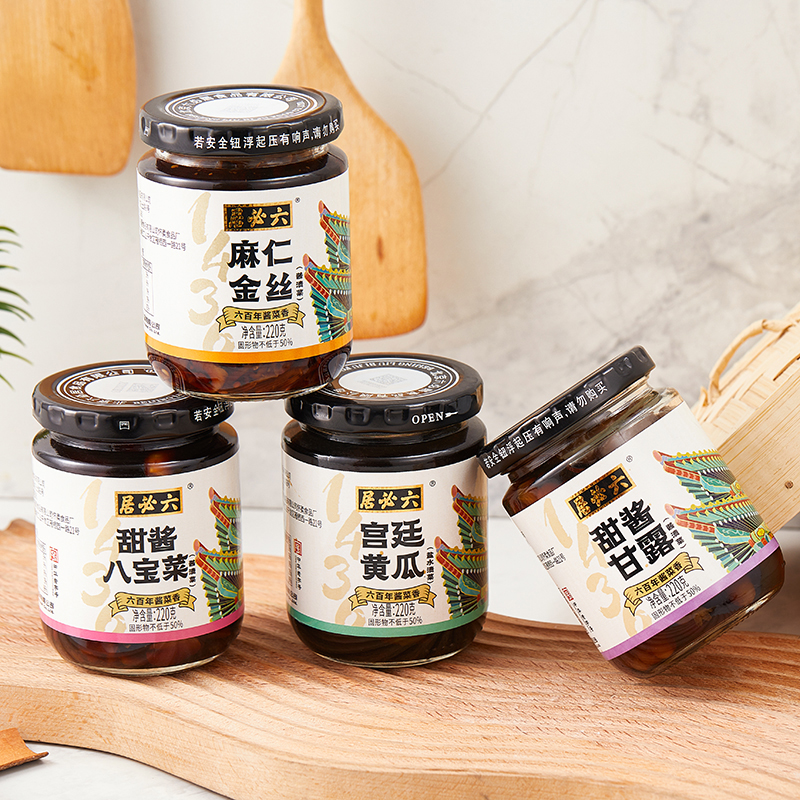 六必居减盐酱腌菜麻仁金丝八宝菜甘露宫廷黄瓜北京辣菜脆鲜瓜3瓶