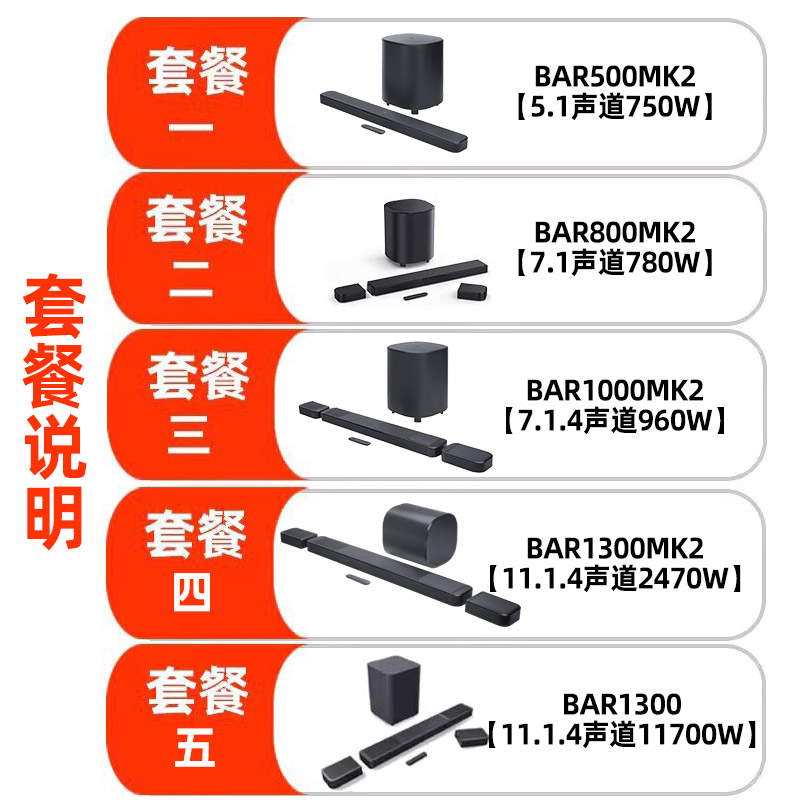 JBL BAR1300MK2家庭影院电视回音壁音响蓝牙音箱低音炮 BAR800MK2