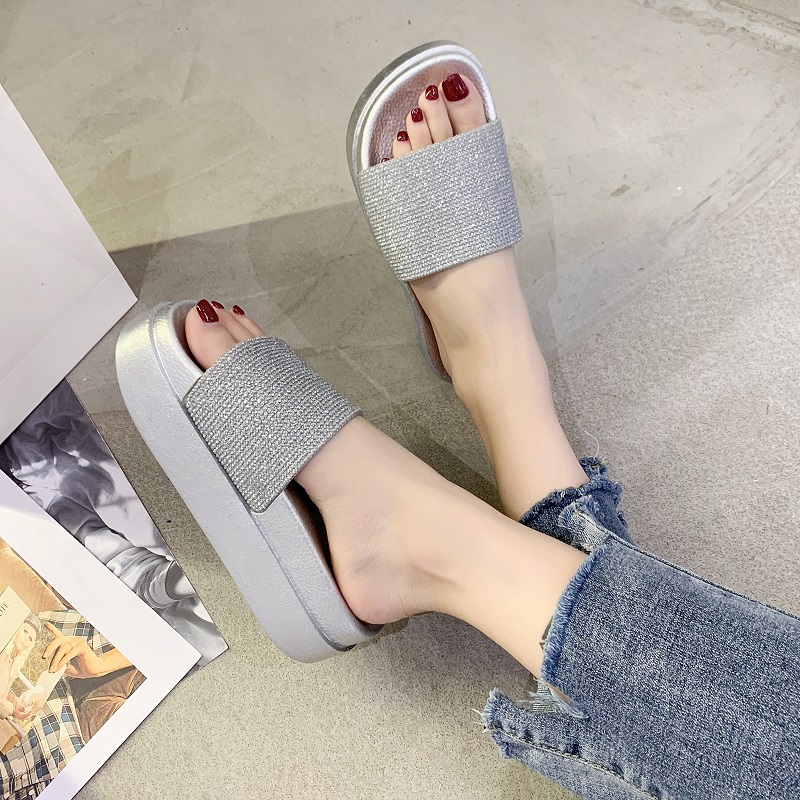 百搭高跟松糕一字凉拖鞋 ins网红厚底拖鞋 时尚 新款 外穿 女2025夏季