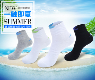 诸暨运动袜子男款 透气吸汗中筒袜防臭青少年长筒袜纯色棉袜 春秋季