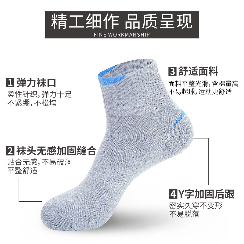 袜子男纯棉春秋款 中筒袜 短袜7a抗菌灰色无骨防臭脚吸汗青少年男士