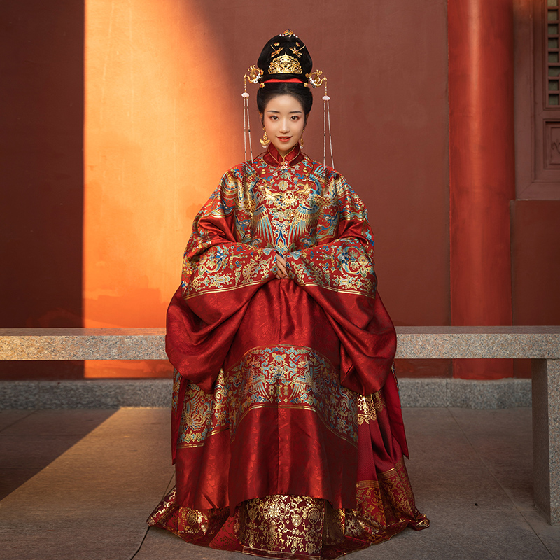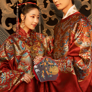 花朝记汉服妆花大斜襟长袄明制婚服马面裙秋冬情侣装 红妆融熠