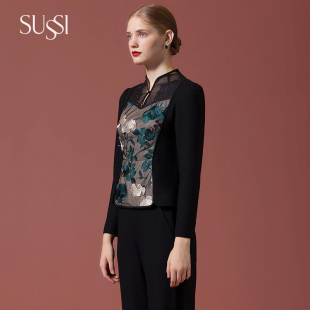 上衣女复古小衫 SUSSI 刺绣蕾丝衫 商场同款 2204S2480 古色春秋新品