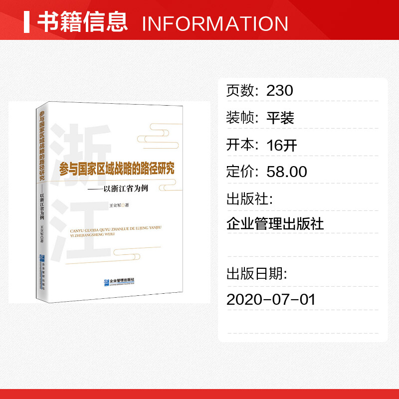 著 各部门经济经管 企业管理出版 路径研究——以浙江省为例 社 图书籍 王立军 新华书店正版 参与国家区域战略 励志