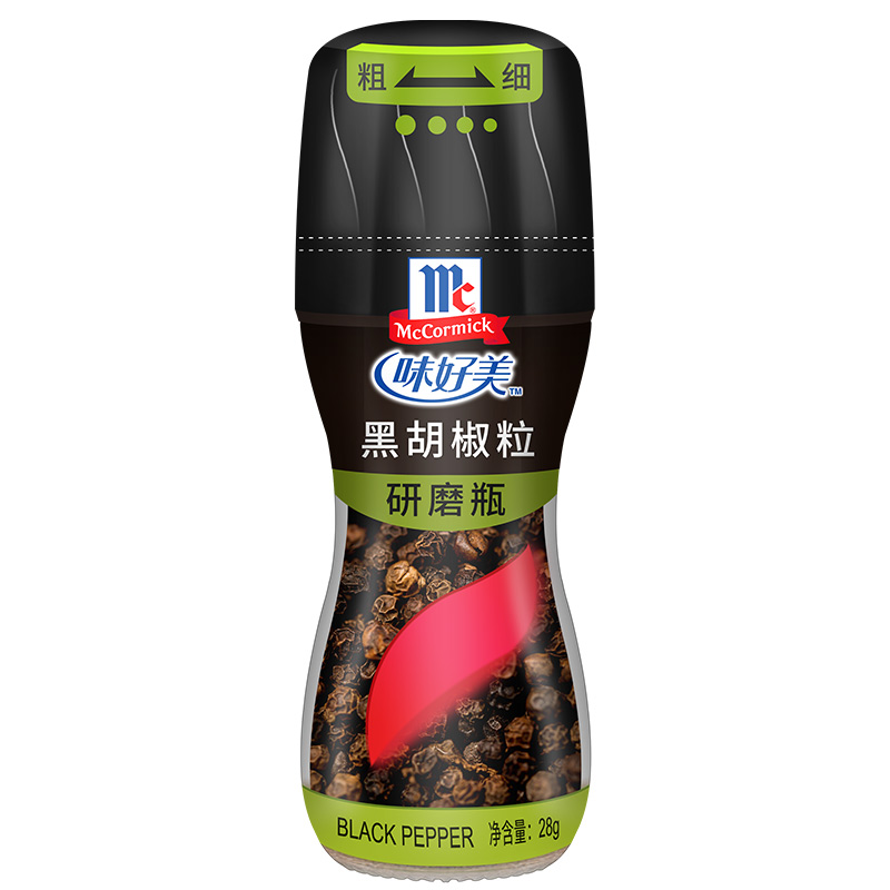 味好美黑胡椒海盐粒带研磨器28g 混合调味料现磨碎黑胡椒粉研磨瓶