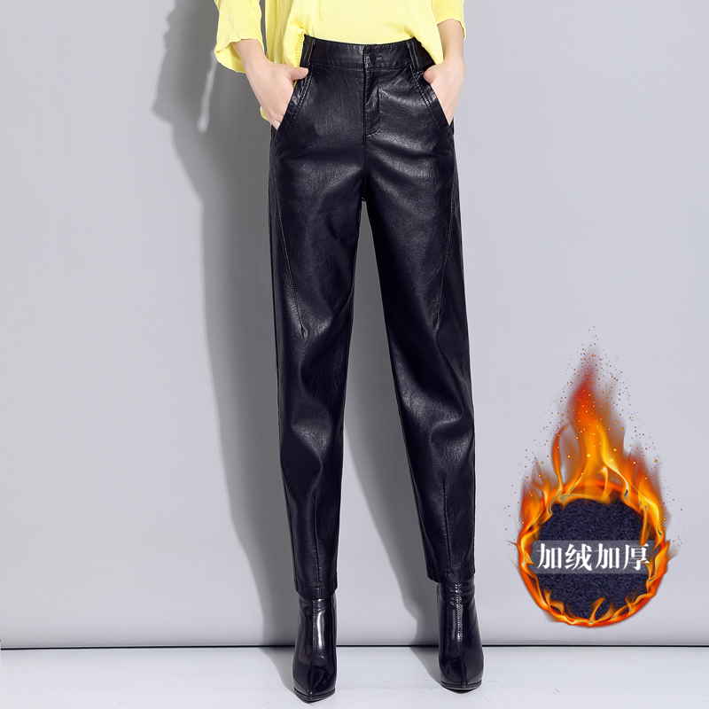女2025秋冬新款 灯笼裤 高腰宽松小脚萝卜裤 加绒九分皮裤 大码 哈伦裤