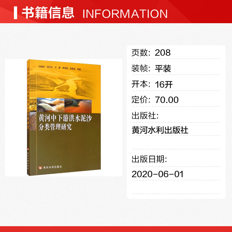 图书籍 社 著 新 专业科技 水利 等 建筑 黄河水利出版 黄河中下游洪水泥沙分类管理研究 新华书店正版 刘继祥