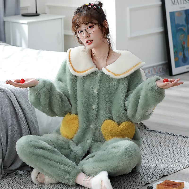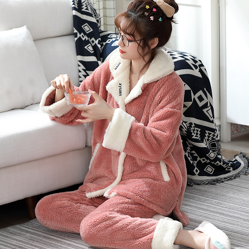 兔子冬天 加厚加绒毛绒家居服可爱法兰绒套装 睡衣女冬款 珊瑚绒冬季