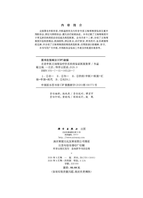 名老中医王灿晖治疗肺系疾病临证医案集要 外感热病朱益敏主编科学出版 案例丰富 慢性阻塞性肺疾病 社9787030651297 通俗易懂 正版