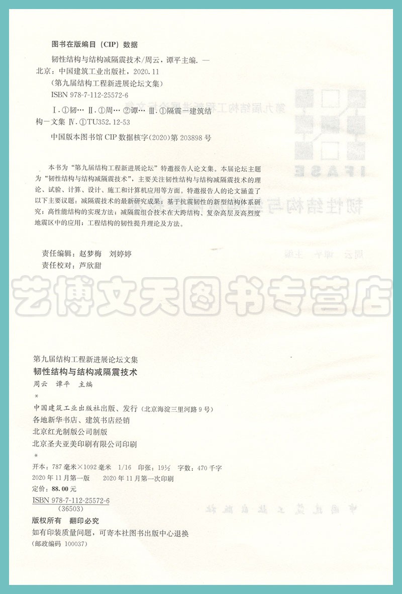 中国建筑工业出版 韧性结构与结构减隔震技术 谭平9787112255726 周云 社 第九届结构工程新进展论坛文集