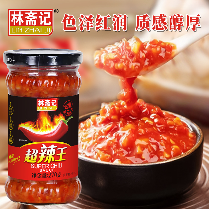 林斋记超辣王270g辣椒酱特辣香辣潮汕风味酱剁椒辣椒酱下饭菜蘸料