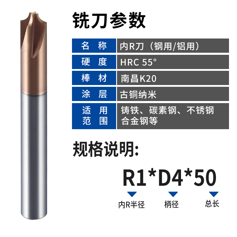 55度内R铣刀钨钢合金内R刀4刃圆弧刀反R角立铣刀钢用铝用数控刀具