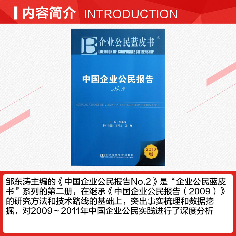 著 企业管理经管 社会科学文献出版 邹东涛 社 图书籍 编 新华书店正版 中国企业公民报告NO.2 励志
