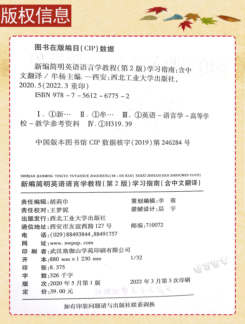 现货速发 学习指南含中文翻译武汉大学外语学院牟杨教授主编新世纪高等院校英语专业本科生教材书籍 新编简明英语语言学教程第二版