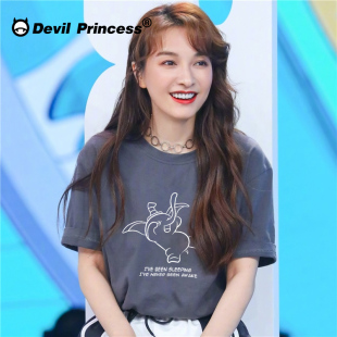 女夏 纯棉短袖 韩国潮牌ins潮牌复古深灰色t恤女2025年新款 宽松韩版