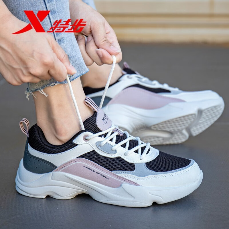 女士网鞋 夏季 黑白跑步鞋 子官方旗舰店运动鞋 特步女鞋 女款 2025新款